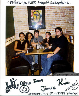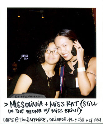 photog[s] : katherine d. isaac. olivia d. isaac. frank shaw [majority of the polaroids]. camera : Polaroid 600 CoolCam. where/when : The Sapphire : Orlando, FL : 20 Oct 2001 |